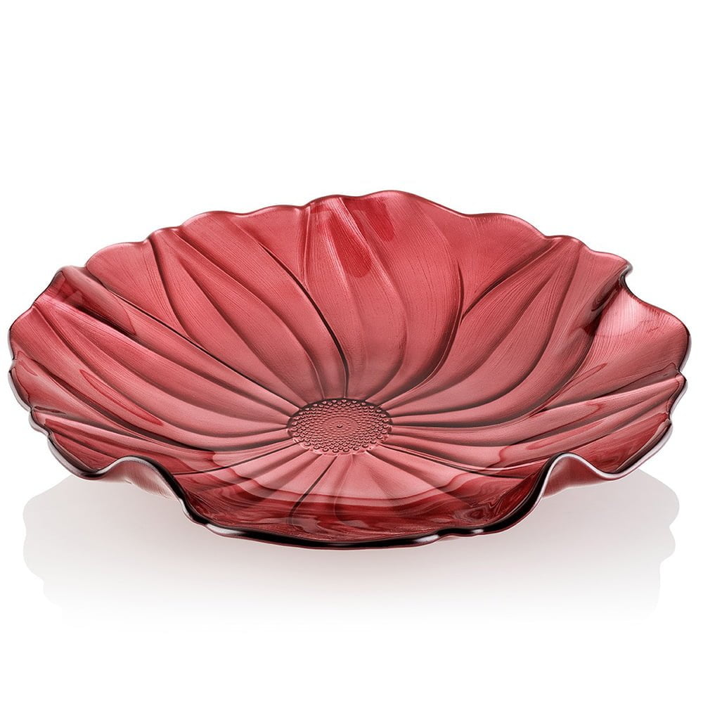 The magnolia collection is a flower texture which is pressed and then hand formed the fluttery edges. Very pure glass mouth blown hand finished, there is no lead in this glass, IVV Handmade in Italy. Hand washing is preferred as is the case with most decorated items.