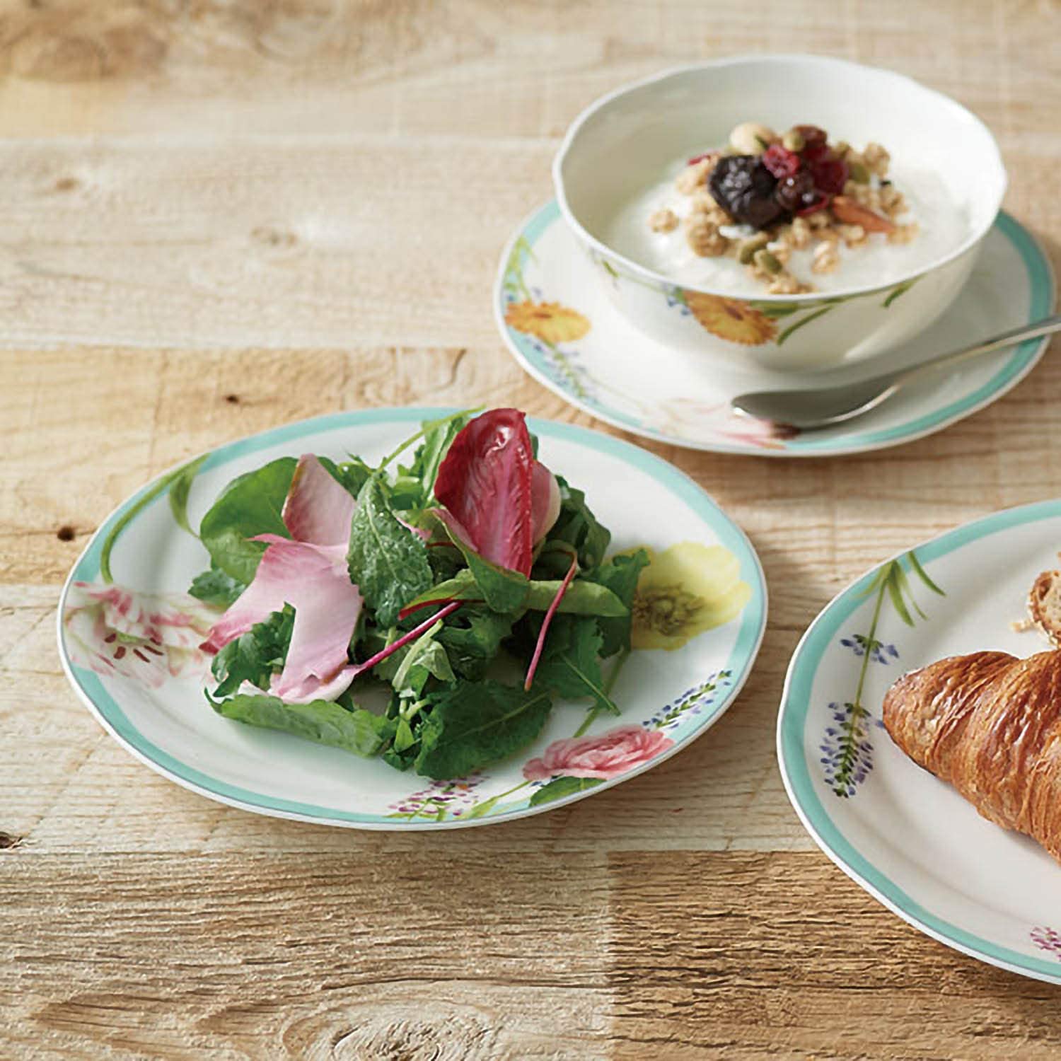 Bouquet-like tableware that collects your favourite flowers. The flowing form and the moist texture unique to bone china give the table an elegant and soft impression. It is compatible with microwave ovens and dishwashers that you can use with confidence every day.